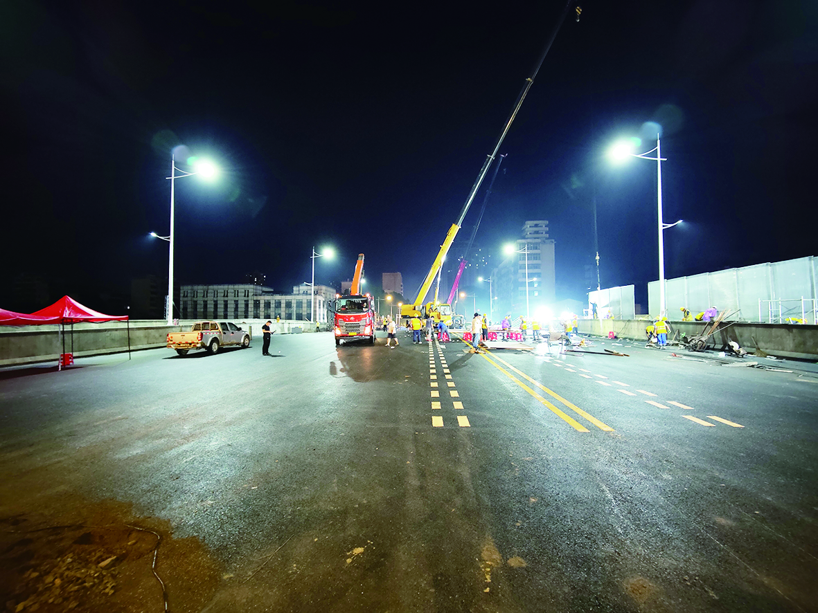 ▲项目现场昨晚灯火通明,为试通车做着最后的冲刺和准备。通讯员/阮翌哲 摄