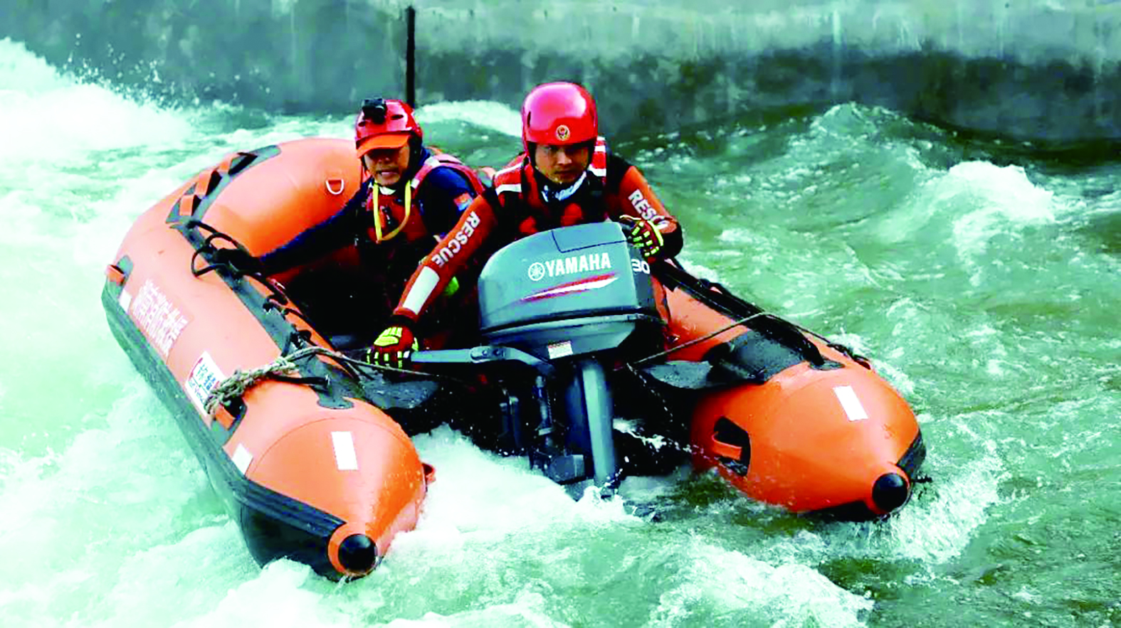 “前方50米发现两名落水者,水流湍急,请求增援!”接到增援命令,两名消防员驾驶冲锋舟快速靠近落水者,其中一名消防员一头扎进急流中,将救生圈套给落水者,两人协力将其托进冲锋舟,救援过程不到3分钟。