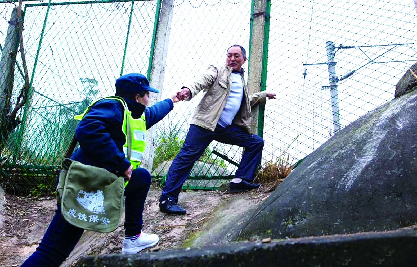 ▲曹甲勇原本是重庆铁路公安处合川车站派出所的一名护路队员。2018年8月,老曹退休了,成为一名铁路义务安全宣传员,他的女儿曹小梅来到了他的工作岗位。