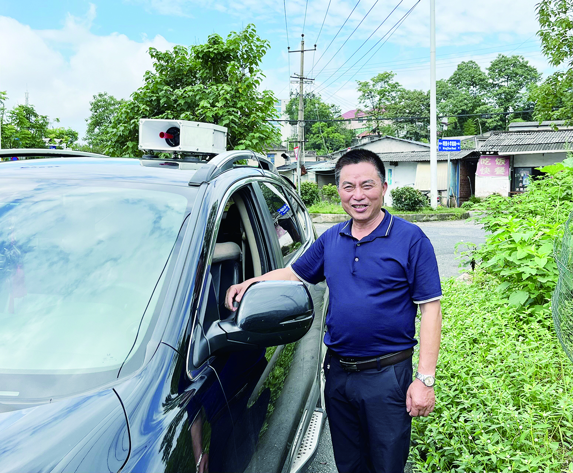 结束在荷塘大道与金城路交叉路口处的宣传活动后,何立明接着驾车前往其他村民小组,继续开展文明宣传活动。