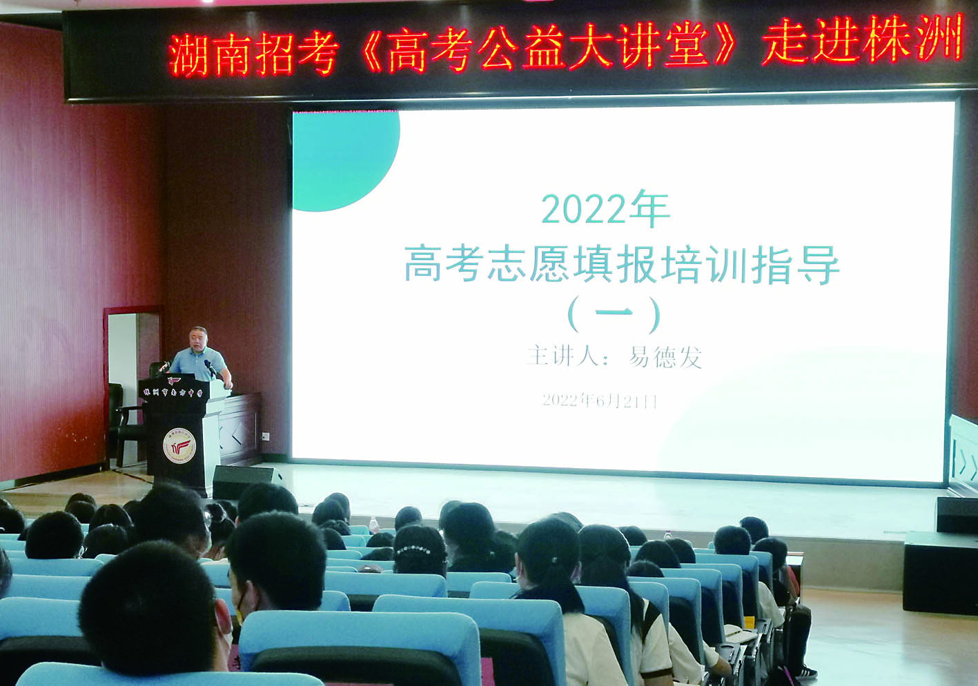 本报讯(株洲晚报融媒体记者/戴凛 通讯员/杨斯琦)6月21日,湖南2022年高考志愿大讲堂及高校招生咨询会(株洲站)在株洲市南方中学举行。专家现场就我省2022年普通高校招生录取政策、专业解读、志愿填报等多项内容进行解读,方便学生和家长及时准确掌握相关信息。