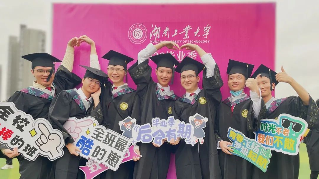 ▶湖南工大毕业典礼,00后毕业生合影留念。 受访者供图