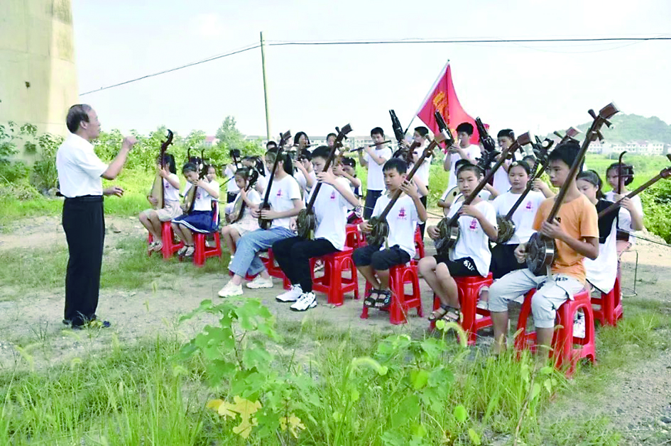 在醴陵市东富镇枧头洲村老街一栋民房里,总有乐器合奏之声,丝竹管弦,余音绕梁……房子主人是77岁的李舒尤,他免费为留守儿童教学民族乐器已经7年,用爱心点亮了乡村孩子的音乐梦。