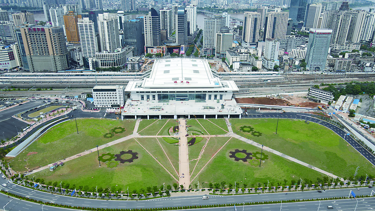 绿化完成 6月24日,株洲火车站东站房的建设工作已基本完成,目前正在进行全方位清扫保洁,东广场外的绿化也装饰到位,为接下来的开通运营做准备。本月底,株洲火车站东站房将全部建成,达到开通运营条件。