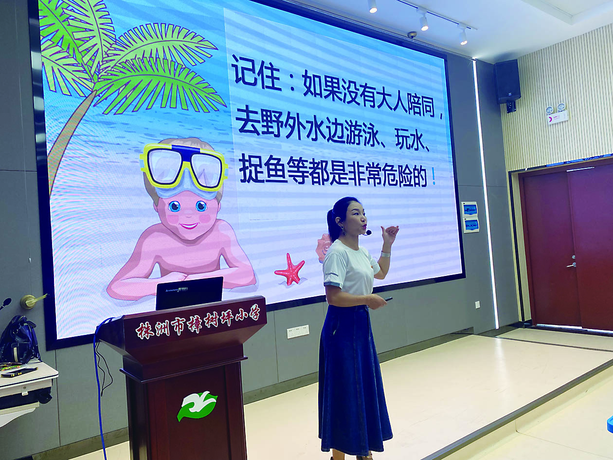 本报讯 (株洲晚报融媒体记者/刘文 通讯员/管艺)天气炎热,防溺水教育成为未成年人教育的重点。6月21日,株洲日报社校园记者俱乐部、市冬季游泳运动协会联合组成的安全教育宣讲团走进樟树坪小学,为学生带来“防溺水”安全教育课。