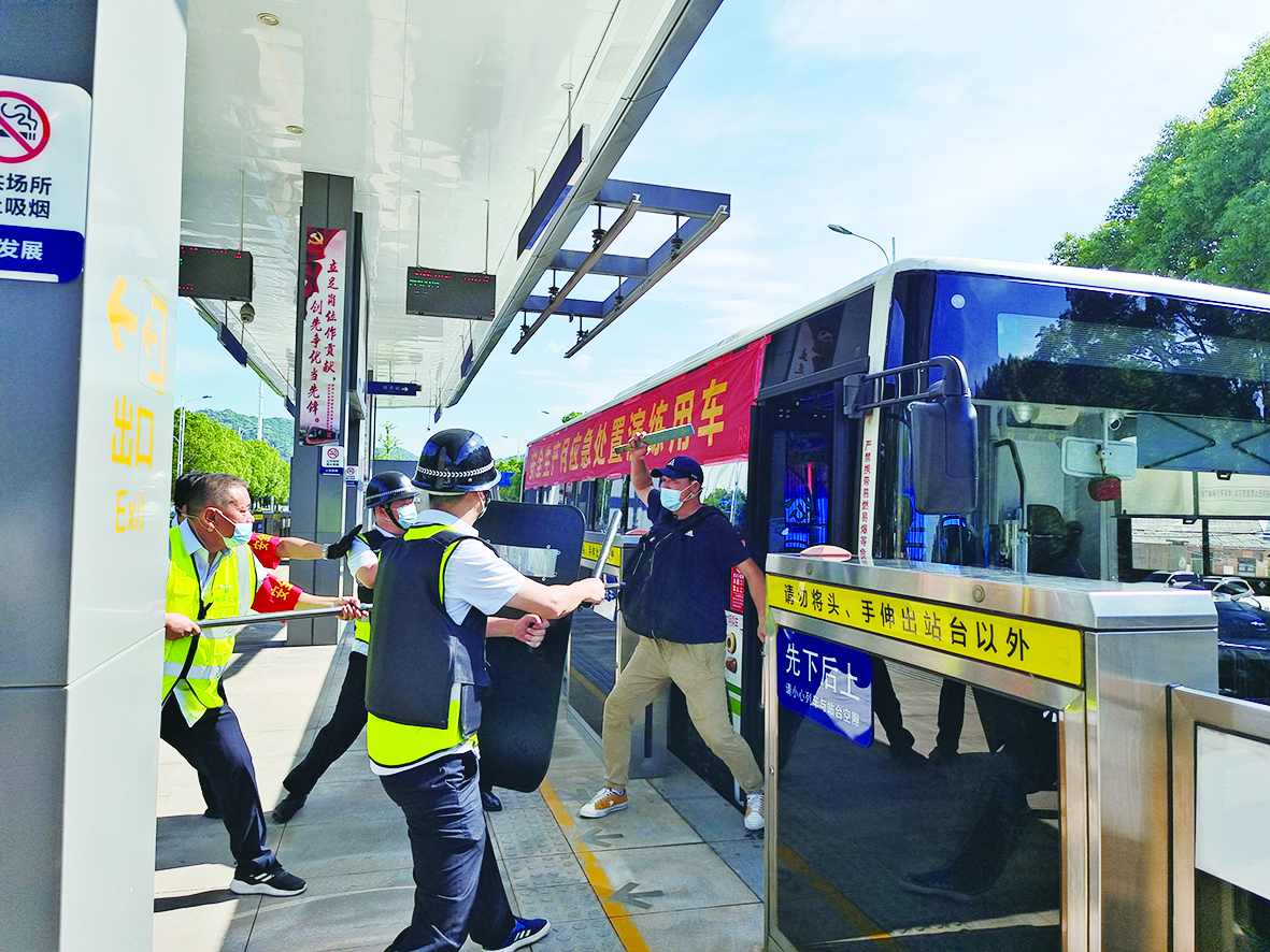 应急演练模拟了暴徒持刀在公交站台行凶以及智轨列车进站充电时突发火情两个场景。经现场工作人员紧急处置以及应急预案启动后各方协同,险情迅速得以控制,危害降至最低。株洲公交总公司相关负责人表示,公司始终将安全生产记在心上、抓在手上、落实在行动上,为市民提供安全、舒适、便捷的公交服务。
