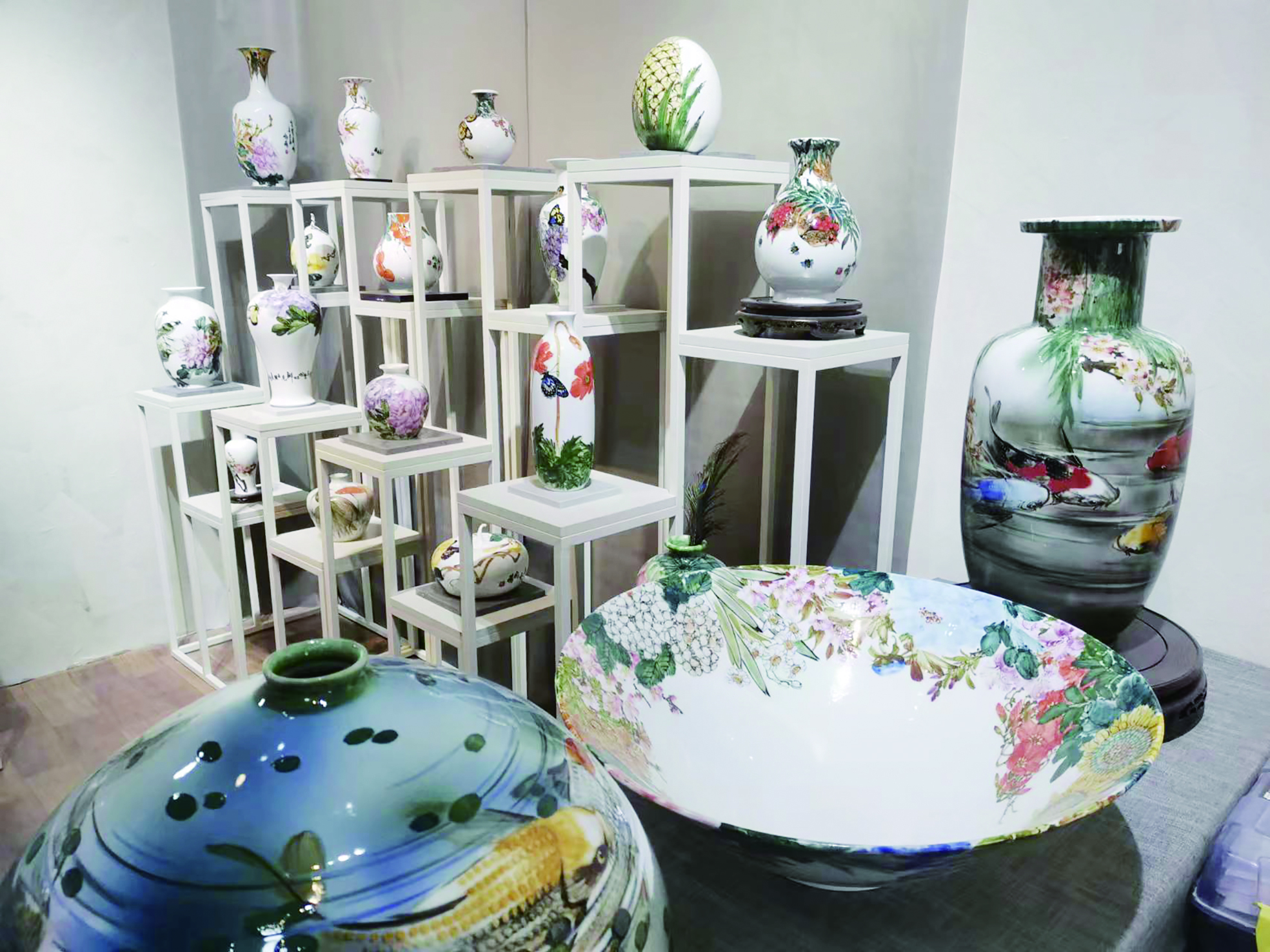 一年后,关兰的首次瓷绘个展“中国彩·中国心”在醴陵举办。其后,她还分别在长沙、广州等地举办了“活色生香·关兰瓷彩”、“当青花遇见蒙德里安”、“瓷画·瓷话”、“关兰瓷彩2021”四场主题个展,收获了业内的好评。