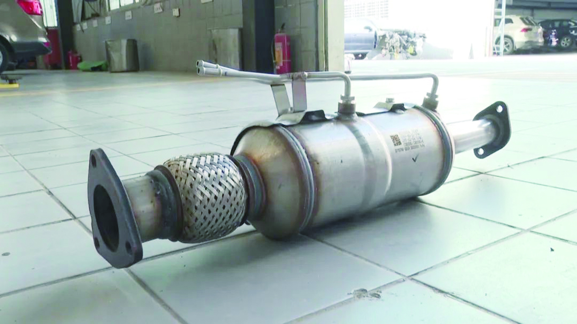 ◀被盗的三元催化器。 通讯员供图