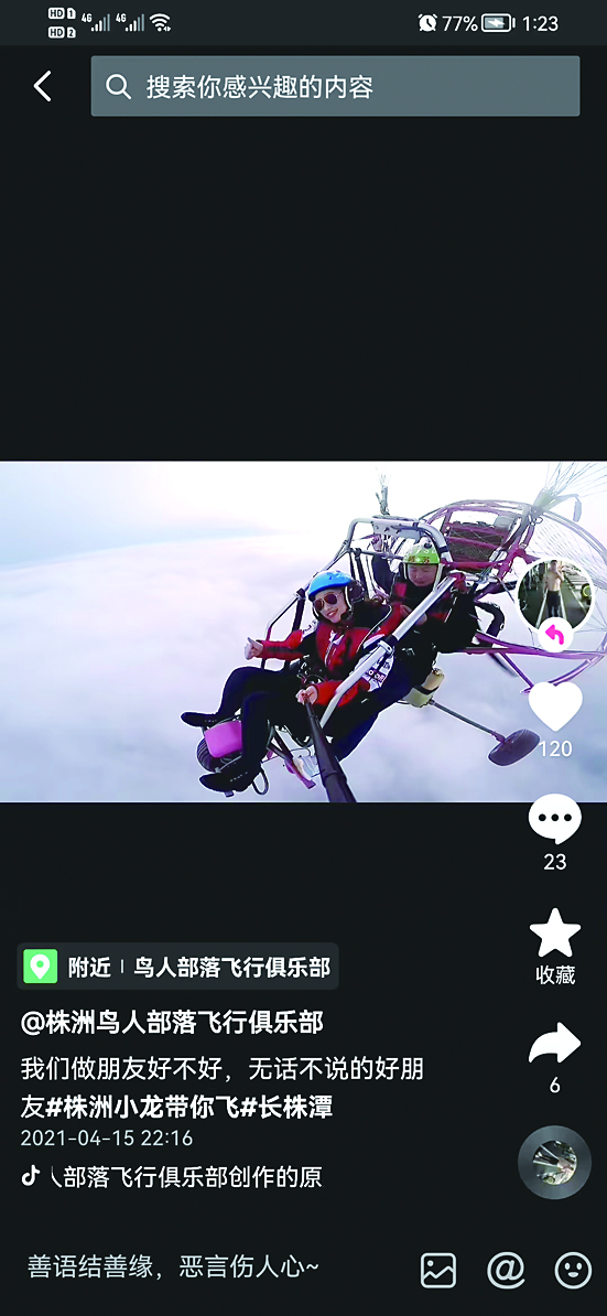 飞上青空,穿越云层,俯瞰我们生活的这座城市,看车水马龙,湖光山色,或许是很多人做过的美梦。打开“株洲鸟人飞行俱乐部”的抖音账号,就可以在现实生活中体味这番梦中的场景。