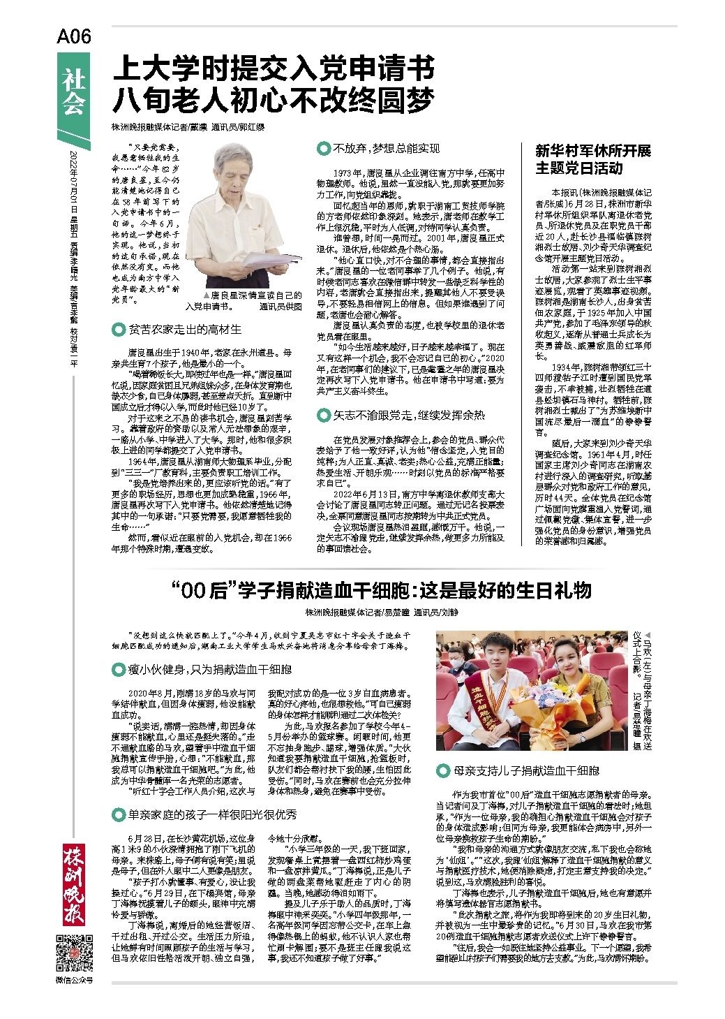 上大学时提交入党申请书 八旬老人初心不改终圆梦
