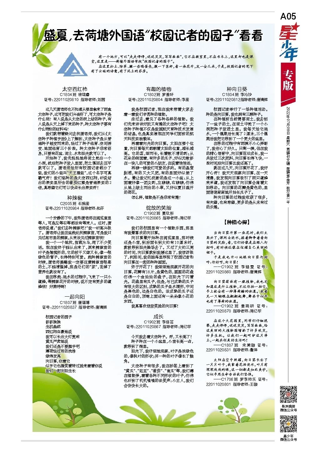 盛夏,去荷塘外国语“校园记者的园子”看看