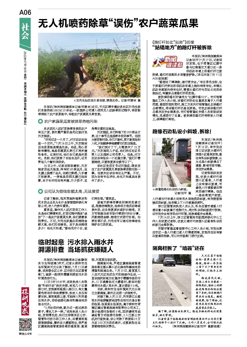 无人机喷药除草“误伤”农户蔬菜瓜果