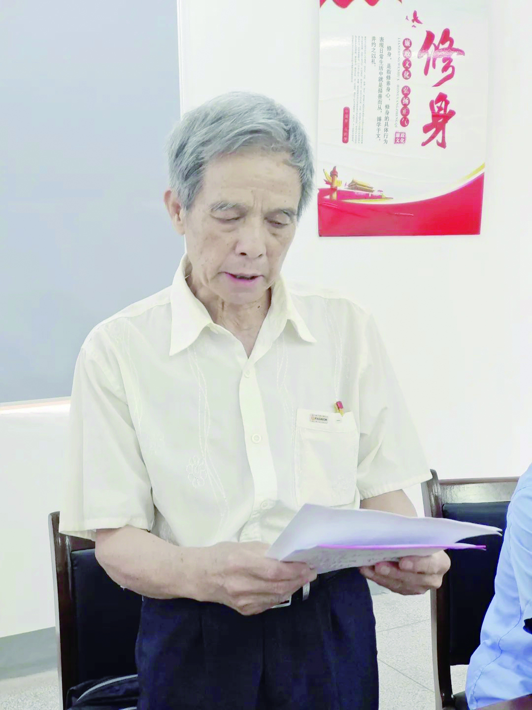 ▲唐良星深情宣读自己的入党申请书。 通讯员供图