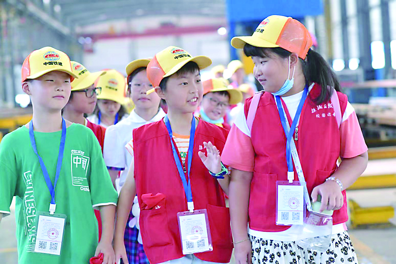 本报讯(株洲晚报融媒体记者/魏朋)“什么是道岔啊?”“叔叔,你们就是传说中的基建达人吗!”……6月25日,中国铁建重工集团道岔分公司来了一群特殊的小客人:50名校园记者走入石峰山脚下神秘的厂区,用充满好奇的小眼睛探寻“大国重器”的秘密。