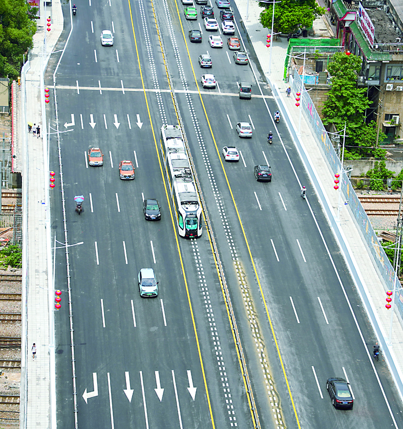 ▲智轨列车驶过新华桥。 株洲晚报融媒体记者/刘震 摄