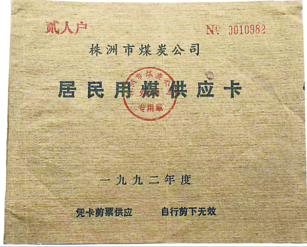 ▲仇民主收藏的居民用煤供应卡。 受访者/供图