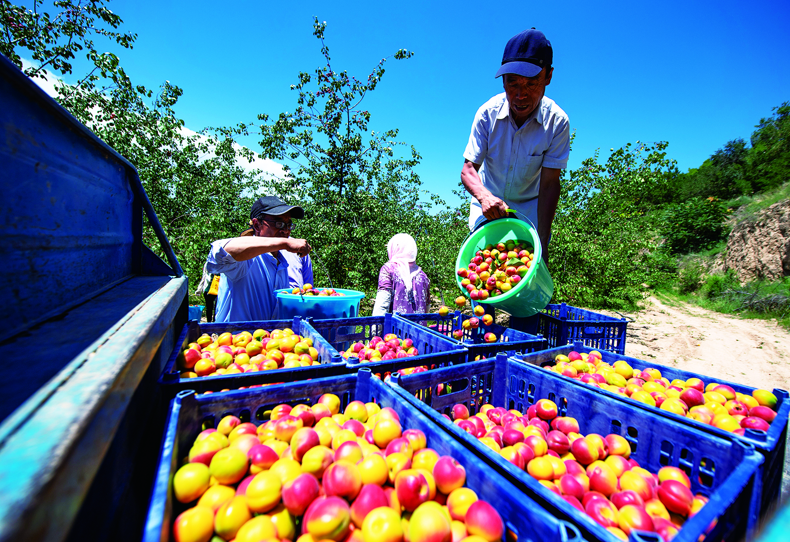 ▲6月30日,在宁夏彭阳县城阳乡杨塬村,农民收获红梅杏。