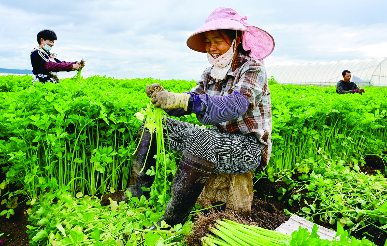 ▲近日,云南省玉溪市通海县芹菜喜获丰收,菜农们正忙着采收、清洗芹菜,销往市场。