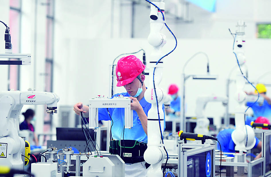 ▲工业机器人赛场,选手们在装配工业机器人。 株洲晚报融媒体记者/谢慧 摄