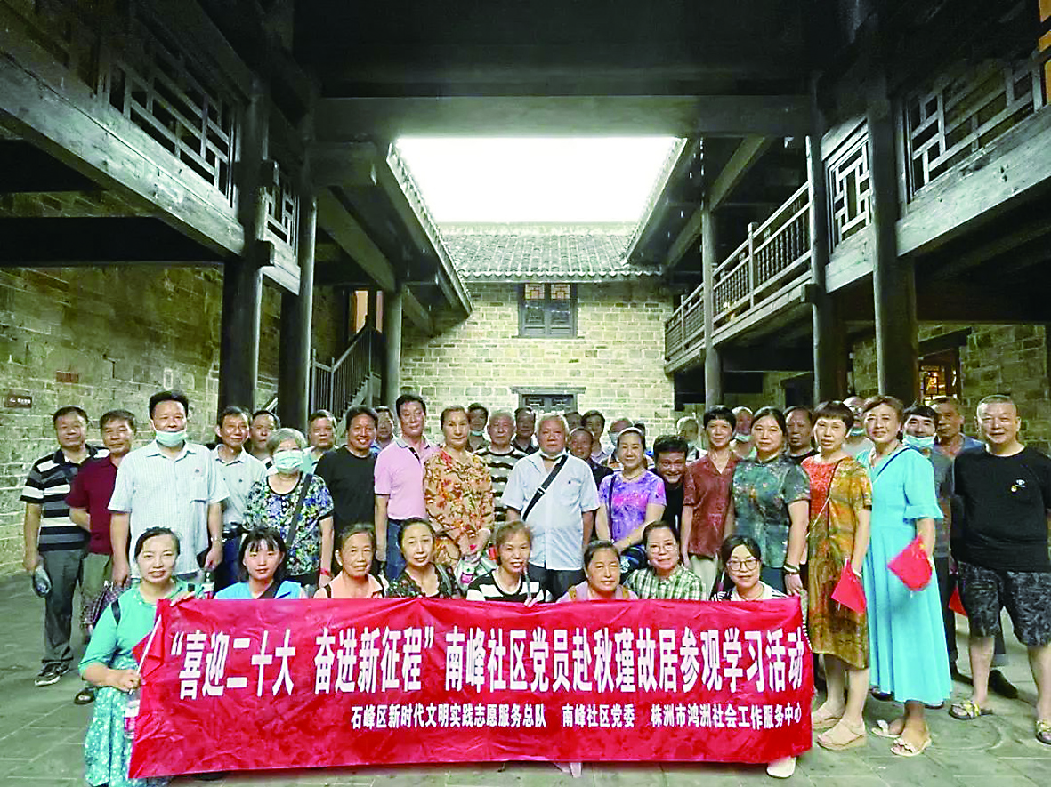 喜迎二十大,奋进新征程。6月28日上午,田心街道南峰社区党委携手石峰区新时代文明实践志愿服务队、株洲市鸿洲社会工作服务中心,组织70名老党员赴秋瑾故居参观学习,活动得到了株洲晚报志愿者联合会株洲公交发展股份有限公司志愿服务队的车辆支持。29日和30日上午,田心街道的泉塘湾社区、东门社区也分别组织了几十名老党员参观了秋瑾故居。(通讯员/谭玉蕾)