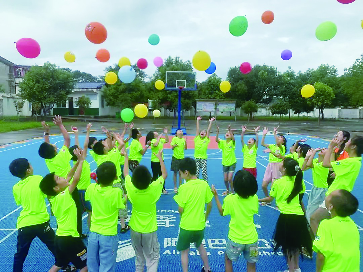▲破冰游戏,孩子们纷纷放飞气球。 志愿者供图