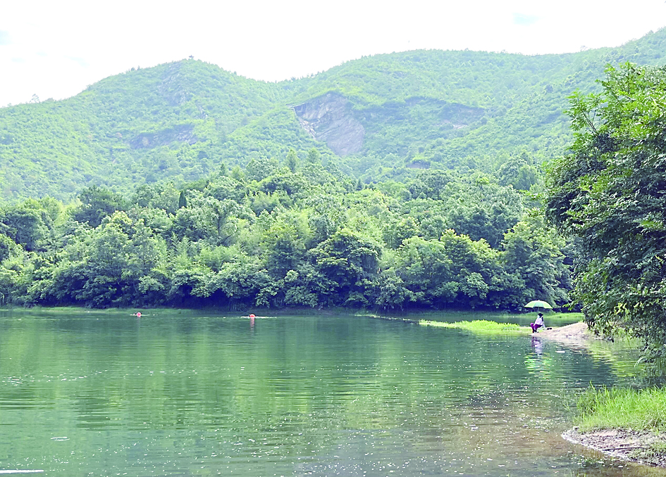 ◀夹坡水库有人在野泳、垂钓。 记者/刘平 摄