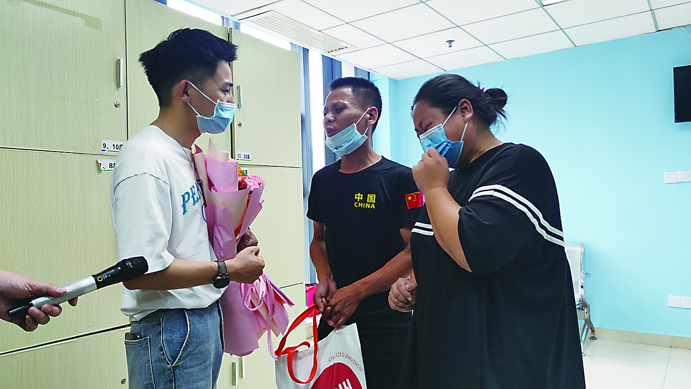 7月8日上午9时,衣哥特地前往株洲市中心医院重症医学科看望小杰,并将慰问物品和30万元善款交到孩子父母手中。