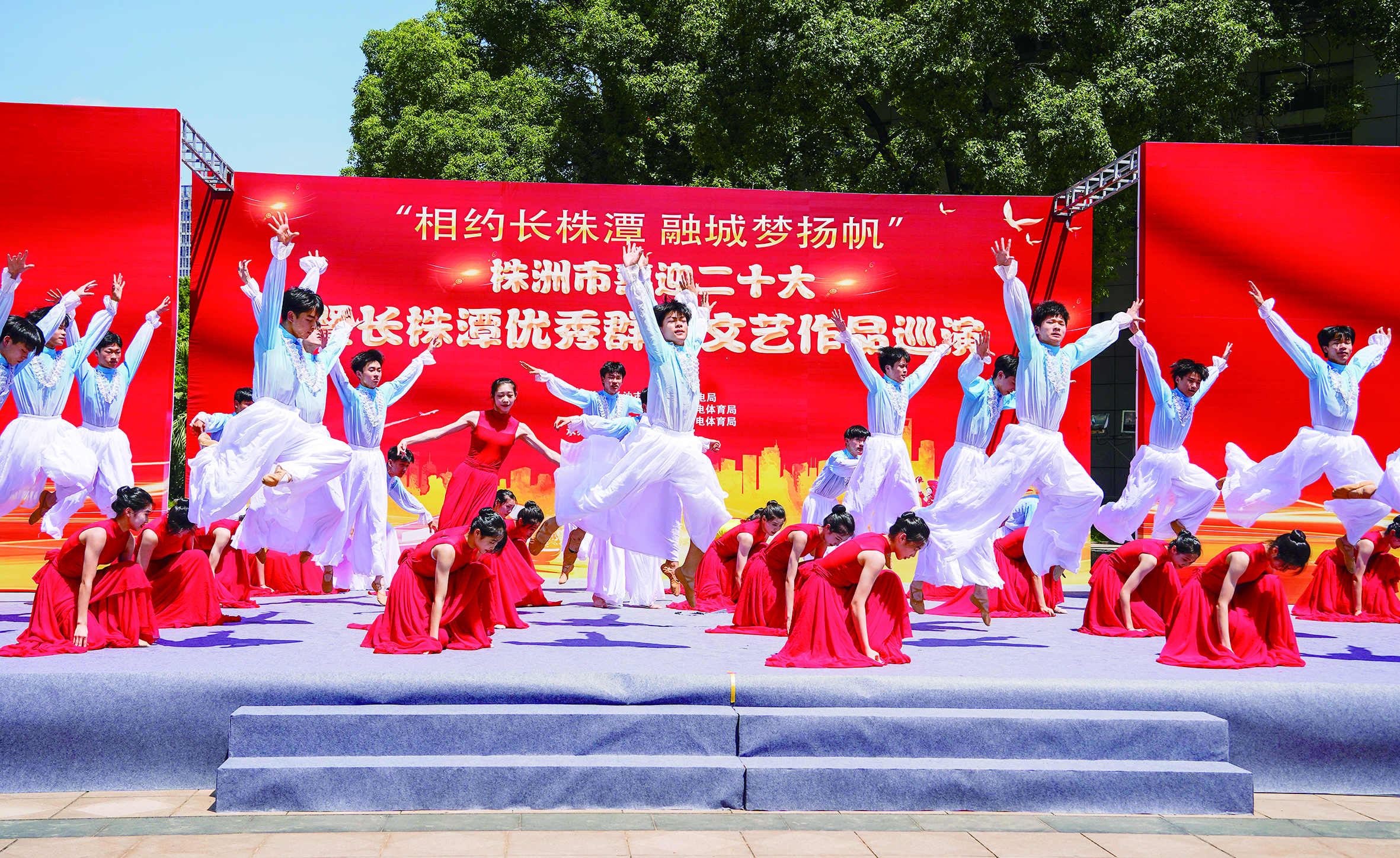 ▲7月10日,“相约长株潭 融城梦扬帆”株洲市喜迎二十大暨长株潭优秀群众文艺作品巡演,在株洲市文化馆举行。活动由长沙市文化旅游广电局、株洲市文化旅游广电体育局、湘潭市文化旅游广电体育局主办,长株潭三市10个优秀群众文艺作品精彩亮相。