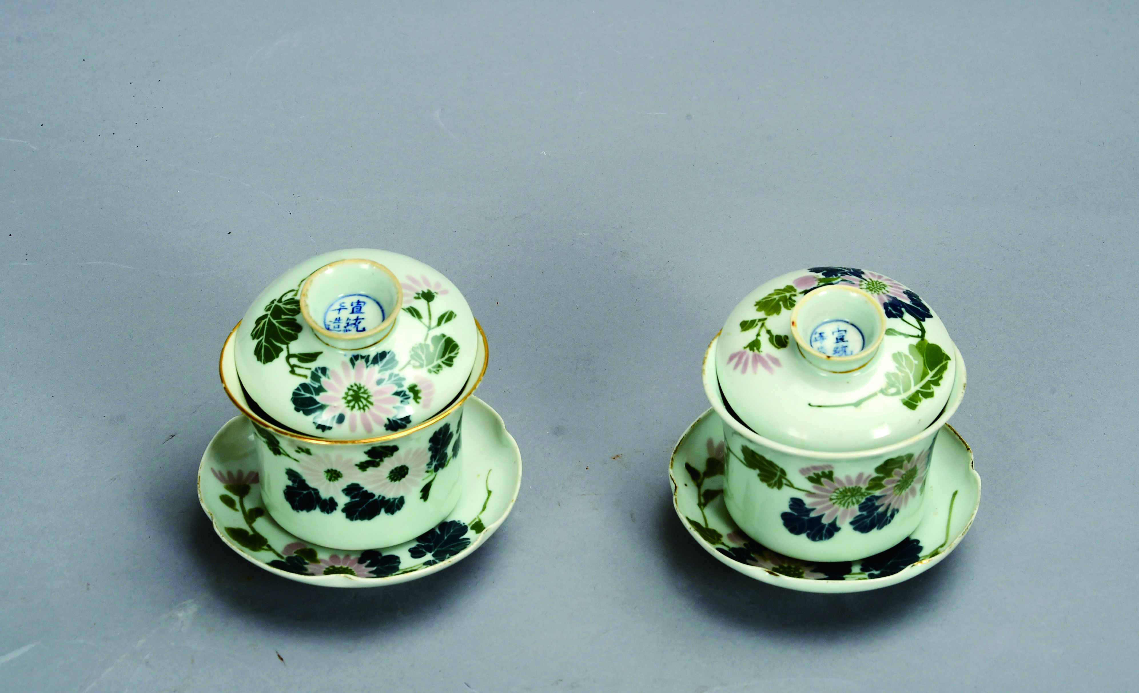 ▲清宣统釉下五彩菊花纹盖碗。