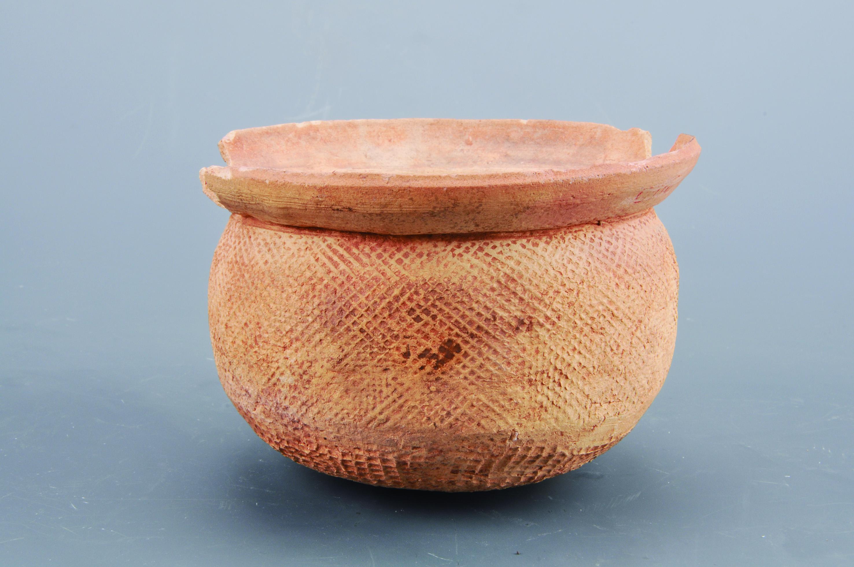 ▲汉陶釜,古人用来煮食物用。