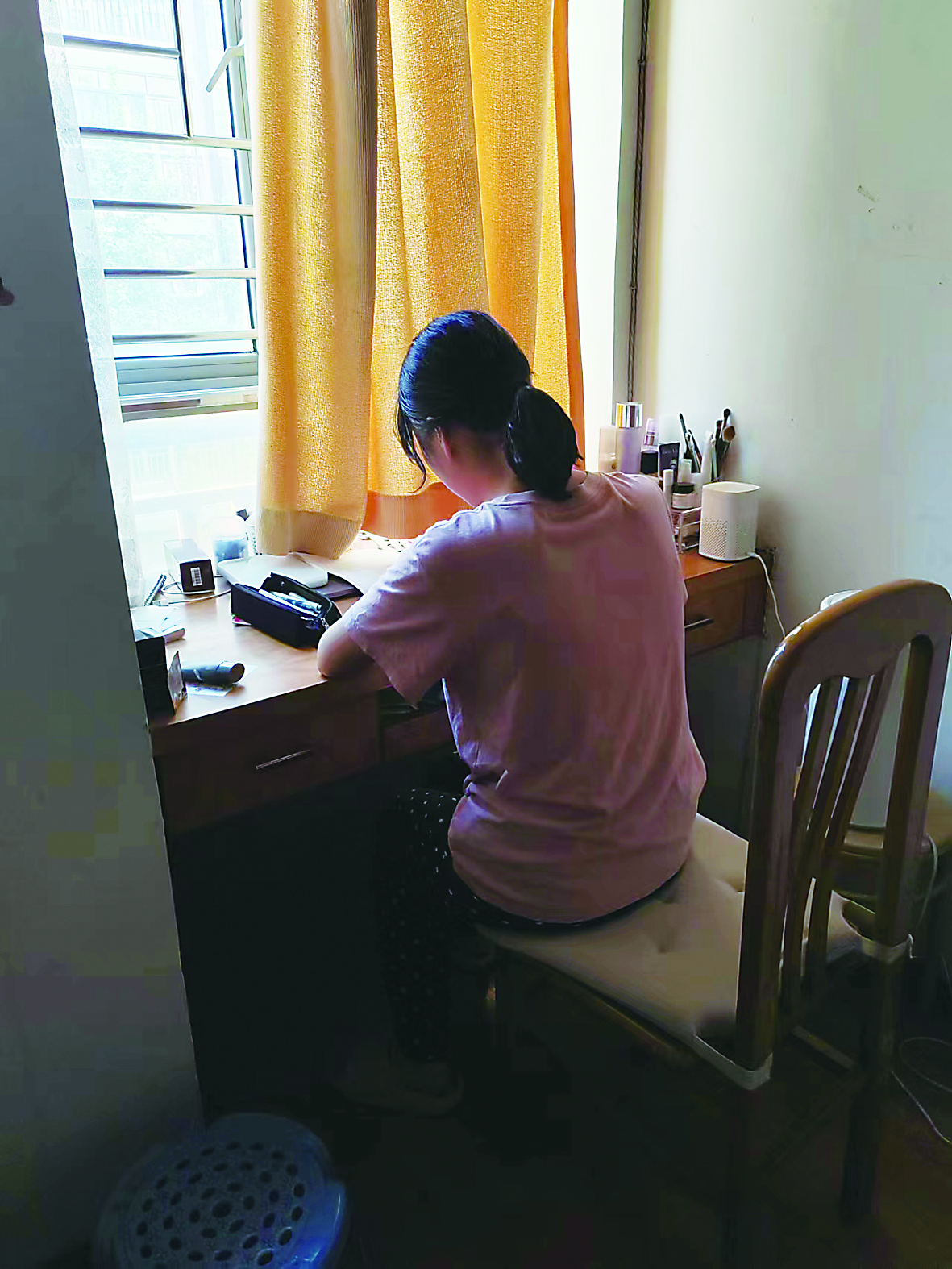 ▶小欣在姐姐家看书。 记者/杨凌凌 摄