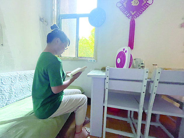 头顶吊扇“嗡嗡”作响,似乎在对抗着37℃的夏天。有可爱笑窝的雯雯(昵称),用干净小碗,给我们倒了水,坐在用纸壳垫着的双人沙发上,讲起了她的故事。