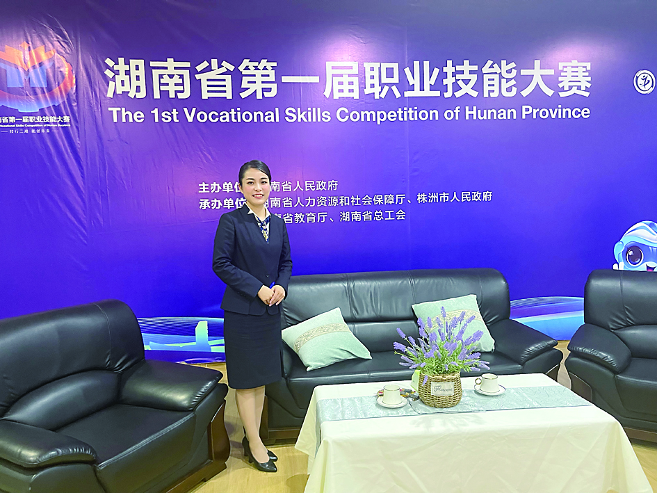 ▲酒店接待比赛中夺金的刘俊含的风采。 株洲晚报融媒体通讯员/胡颖 供图