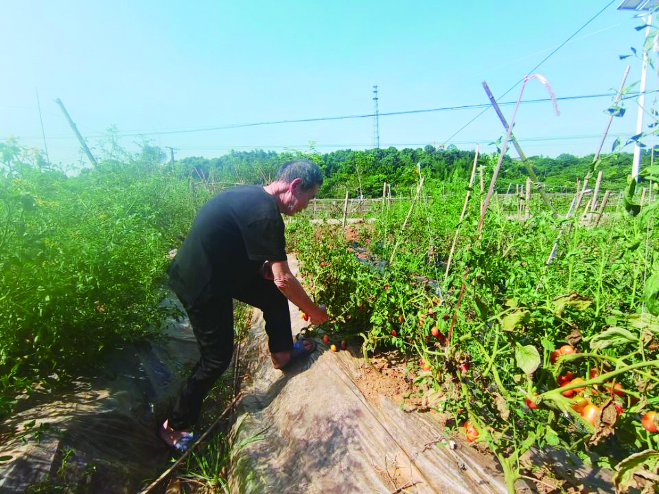 ▲刘先生站在圣女果地里,满是无奈。记者/何春林 摄