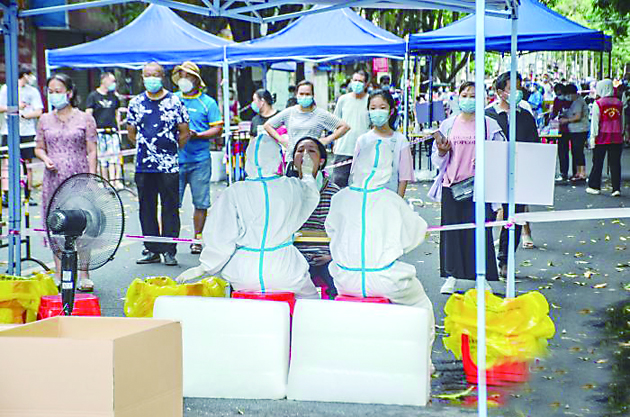 ▲7月17日,北海市开展第五轮区域全员核酸检测工作。中新社供图