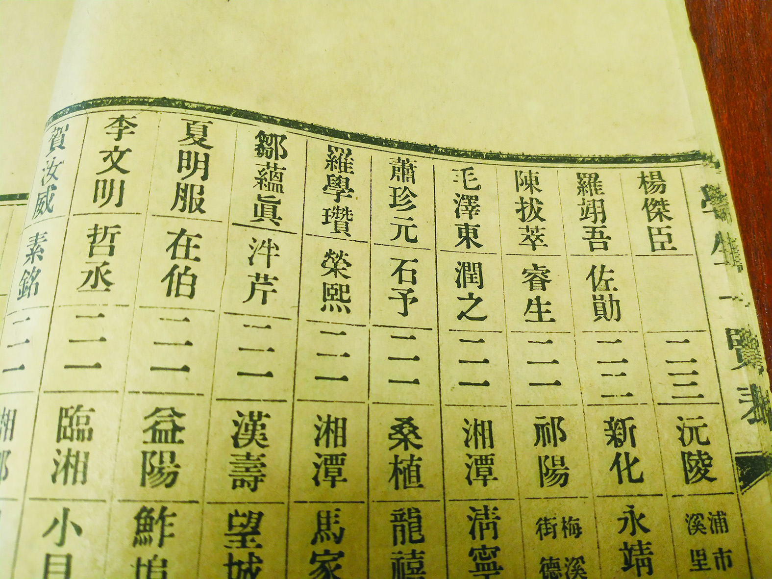 ◀《湖南省立第一师范学校职员学生一览表》。 记者/廖智勇 摄