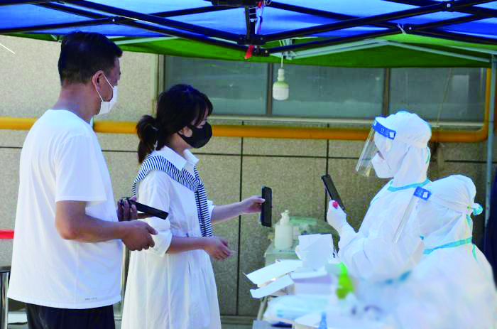 ▲兰州市民按要求进行核酸检测。中新社供图