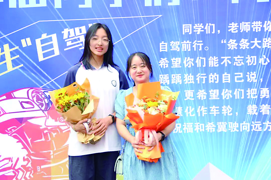 ◀高考后,张雨潇(左)与班主任黄玲老师合影。 通讯员供图