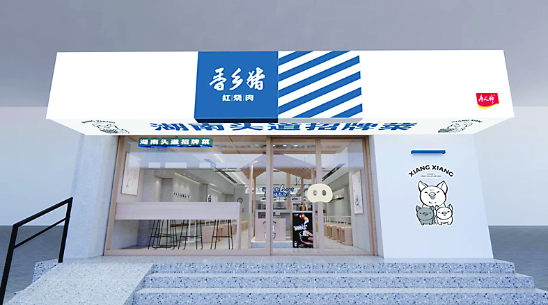 中国是全世界最大的猪肉生产和消费大国,猪也是十二大生肖之一,过去农村过年都有杀年猪的习俗,如今无论家宴还是客宴,几乎餐餐少不了猪肉,如辣椒炒肉、红烧肉、回锅肉、扣肉、腊肉、肘子,等等。“香乡猪”餐饮连锁店的开业,正好满足了人们对高品质猪肉消费的需求。香乡猪LOGO上的三只小猪寓意一生二、二生三、三生万物,预示香乡猪品牌要立足湖南,走向全国,面向全世界,让猪福传天下。