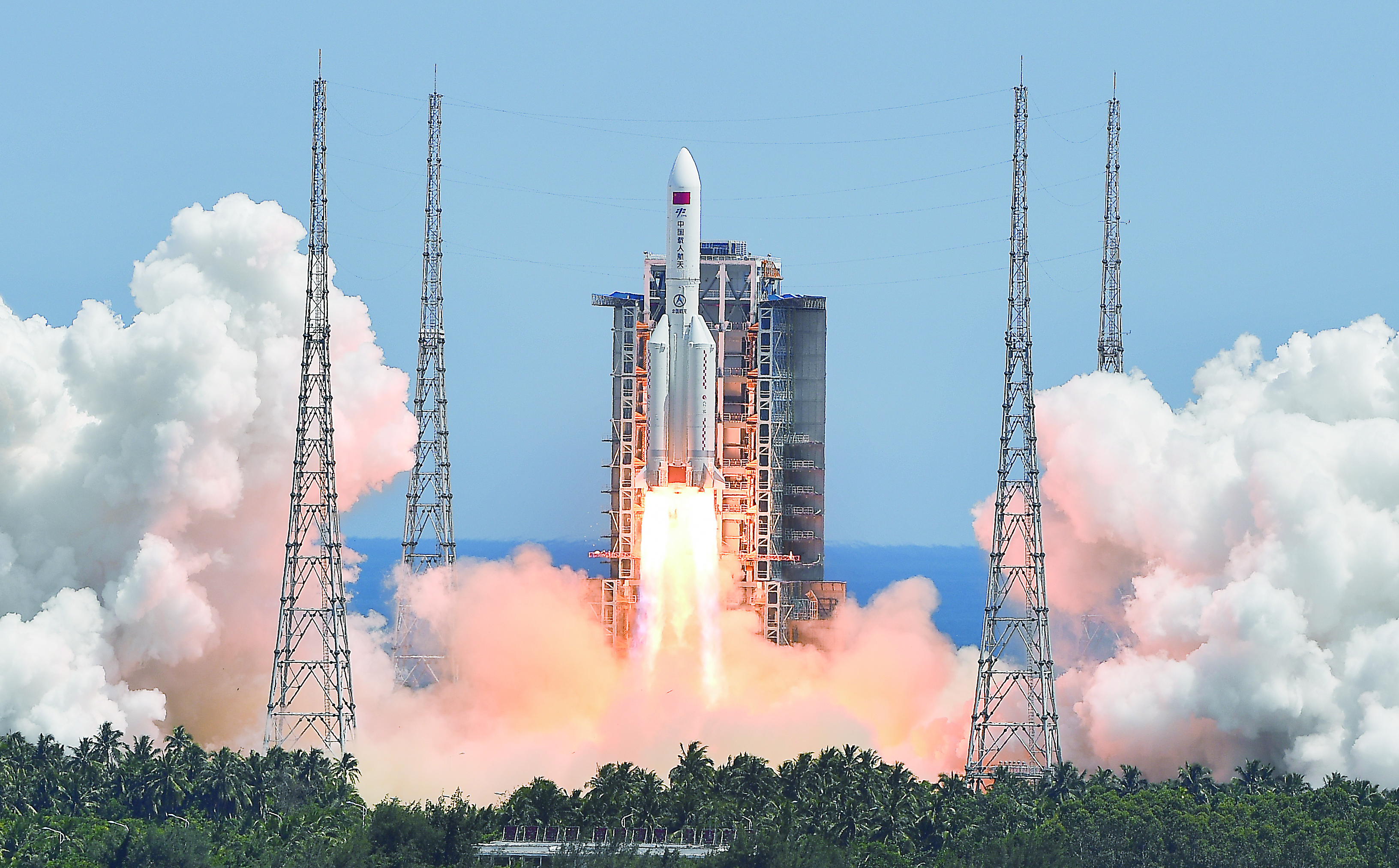▲7月24日14时22分,搭载问天实验舱的长征五号B遥三运载火箭,在我国文昌航天发射场准时点火发射,约495秒后,问天实验舱与火箭成功分离并进入预定轨道,发射取得圆满成功。这也是我国首个科学实验舱发射成功。 新华社记者 杨冠宇 摄