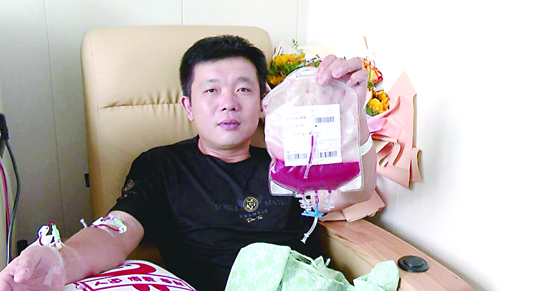 ◀杨小兵捐献造血干细胞,为他人生命续航。 通讯员/左振华 供图