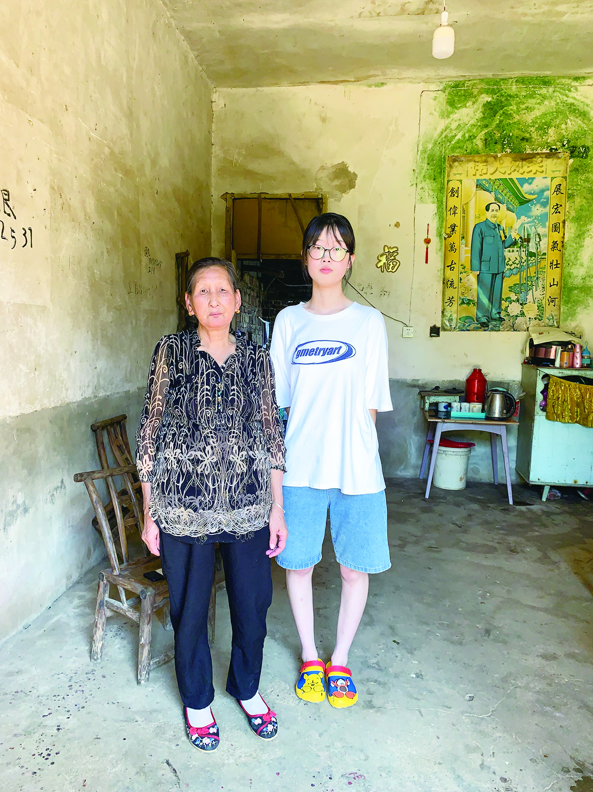 小畅胆子小,每次回家都要和外婆一起睡。“几年前,屋后面几间房倒塌了,只留下前面三间房。”小畅说,“和外婆在一起就感觉很安心,什么都不怕了。”