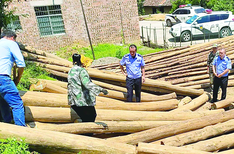 此外,森林公安在辖区巡查时发现一个农户家前坪堆放大量的杉原木及杉条,还有人将杉木装车准备运走。民警立即对这批杉木进行检查,发现杉木是村民张某不久前运来的。