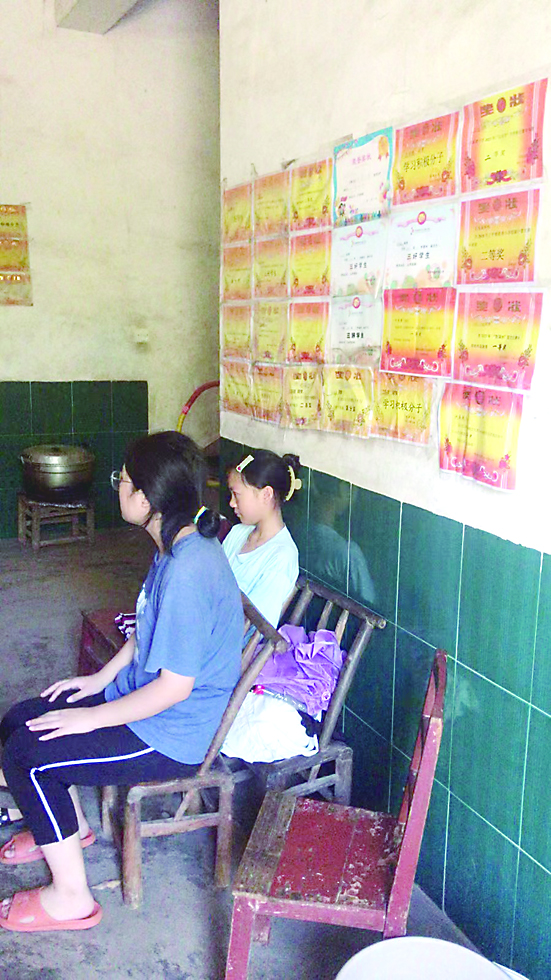 ◀小琴(前)和妹妹。 记者/谭筱 摄
