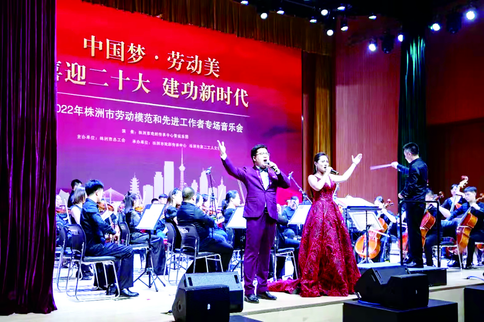 7月27日晚,由市总工会主办,市戏剧传承中心、市第二工人文化宫联合承办的“中国梦·劳动美——喜迎二十大 建功新时代”2022年株洲市劳动模范和先进工作者专场音乐会在市第二工人文化宫举行。市总工会邀请了全市350余名各级劳动模范和先进工作者代表观看音乐会,向他们表达敬意。