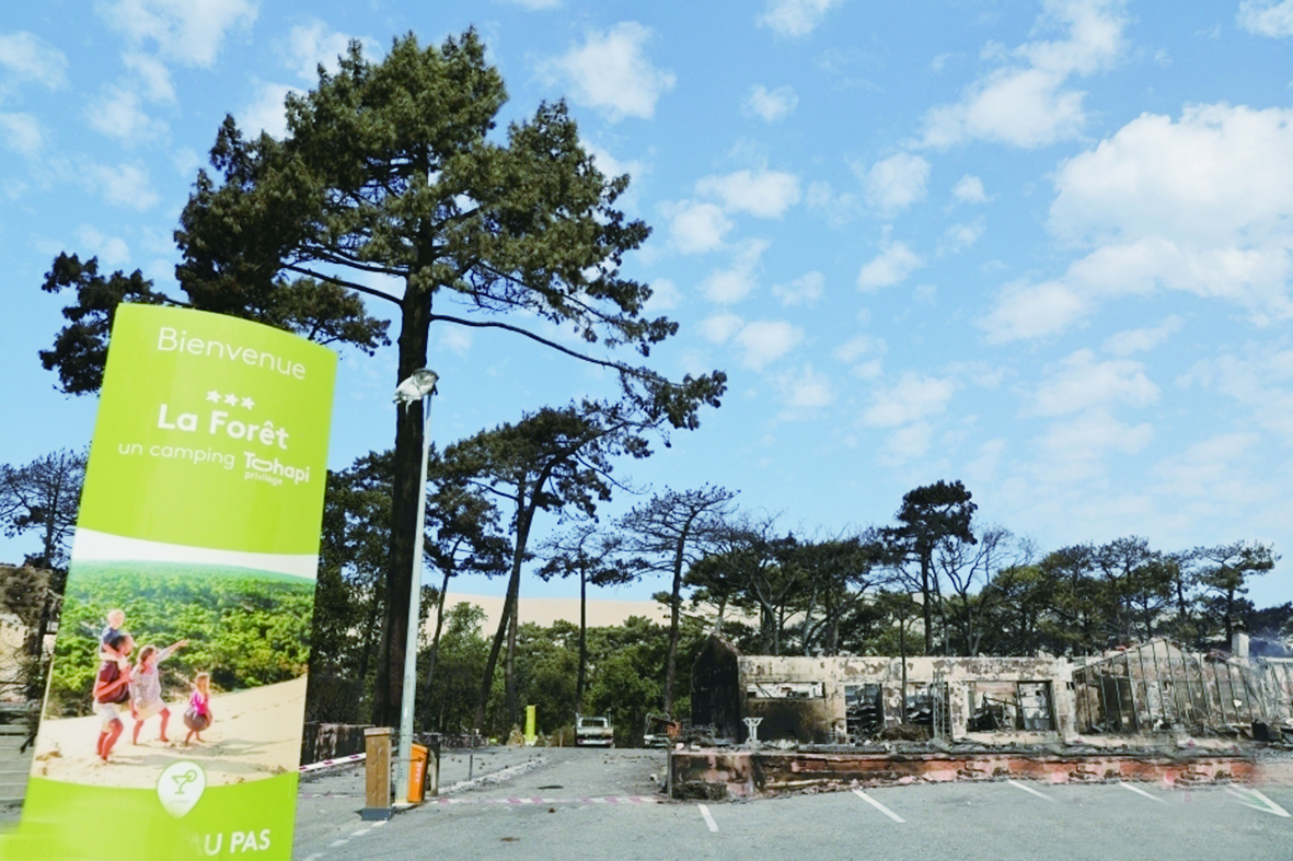 ▲法国吉伦特省波尔多郊外,当地森林大火持续蔓延,比拉沙丘的露营地被烧毁。