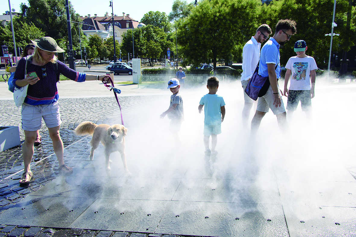 ▲7月19日,在匈牙利布达佩斯,人们在一处公共加湿设施享受清凉的喷雾。 (本版图片据新华社、中新社)