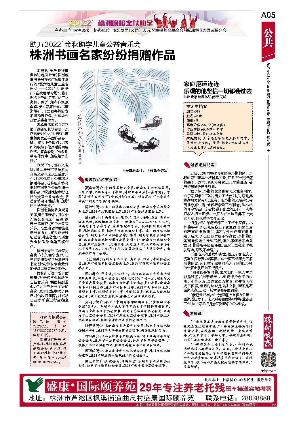 助力2022’金秋助学儿童公益音乐会株洲书画名家纷纷捐赠作品