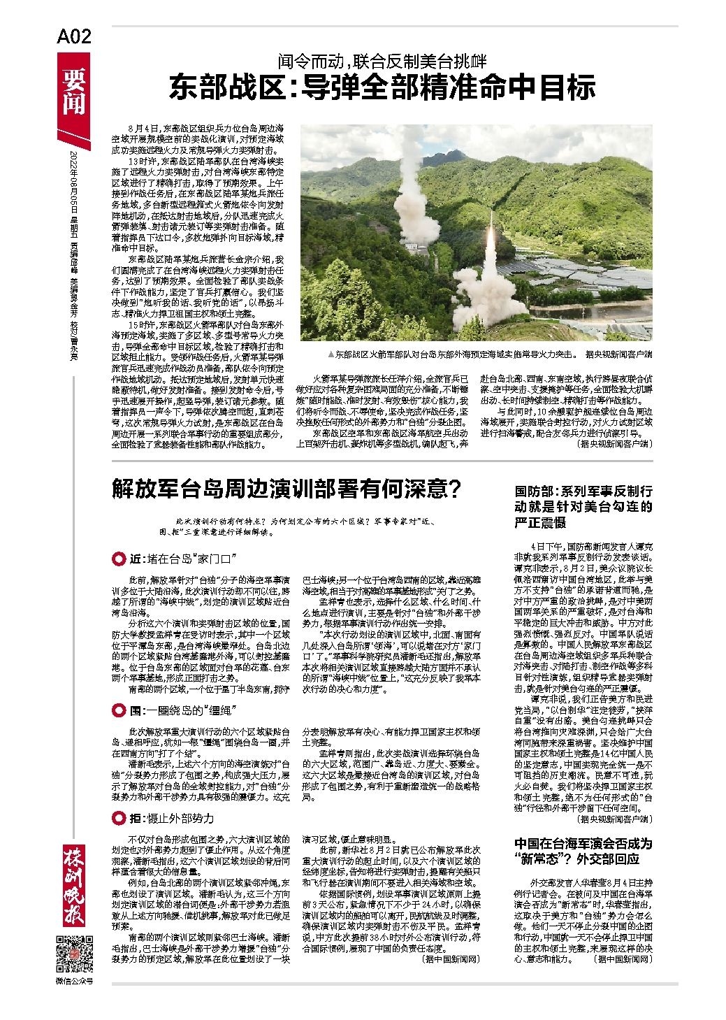 东部战区:导弹全部精准命中目标