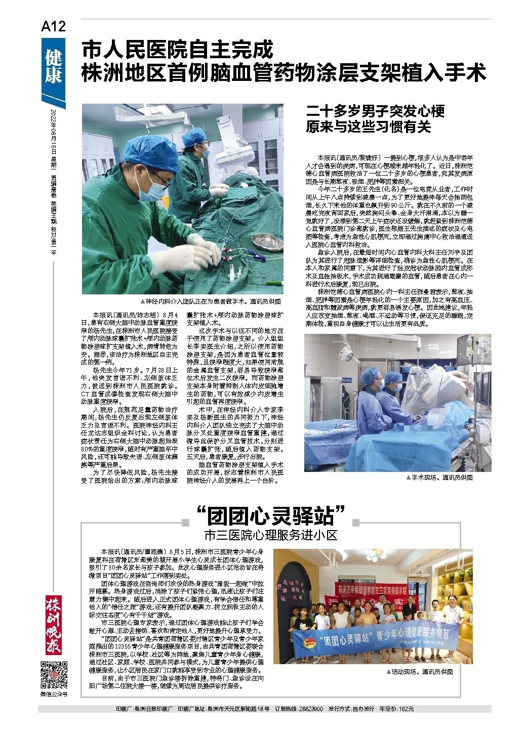 市人民医院自主完成株洲地区首例脑血管药物涂层支架植入手术